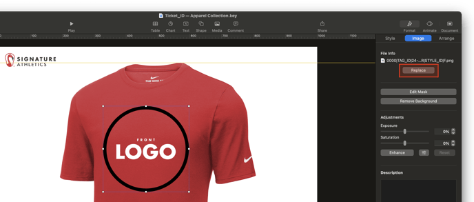 - Click on the logo, Goto Format > Image > Replace