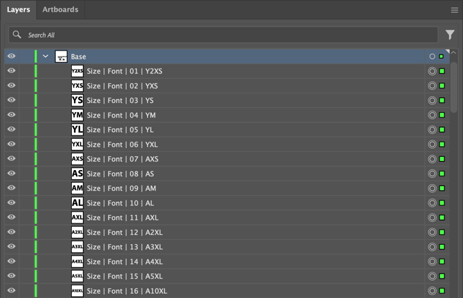 - Repeat for all sizes, checking alignment (adjust left/right/top/bottom if inconsistent).