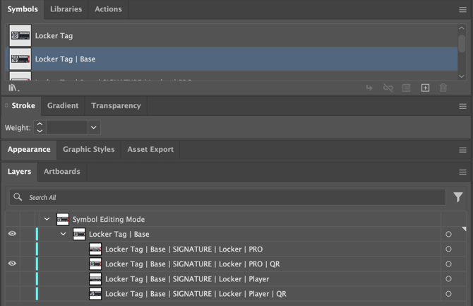 - If the Locker Tag | Size | Font Symbols are missing Copy & Paste into New Master.