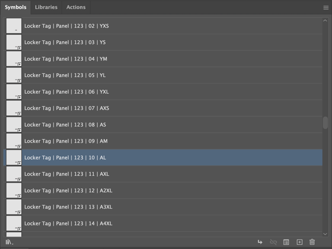 - If any Locker Tag Symbols size lacks the "Locker Tag | Panel | 123 | 10 | AL" structure, add it based on the AL template.