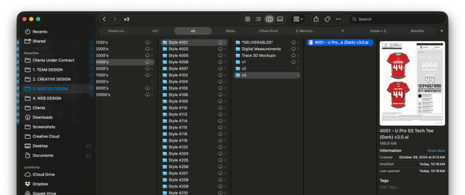 - Rename the file to update the version (e.g., from "4001 - U Pro SS Tech Tee (Dark) v2.0" to "v3.0").