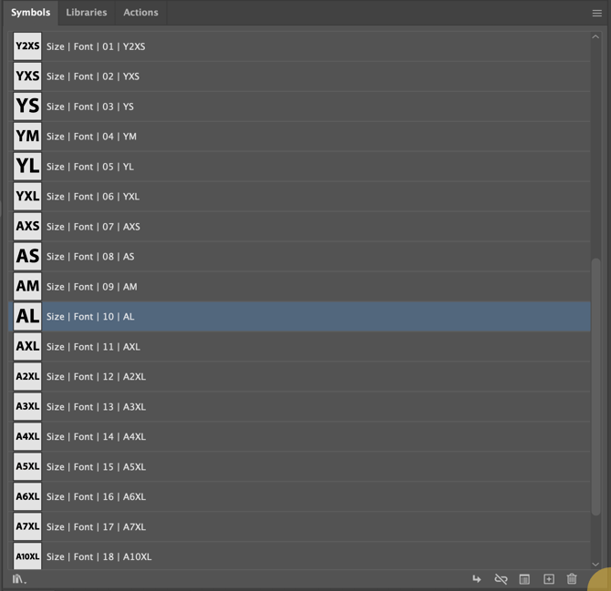- Size | Font | 01 | Y2XS