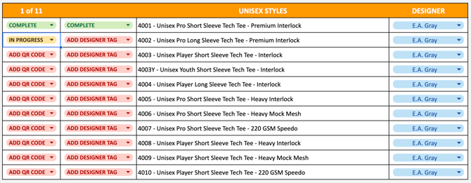 The Tracker helps assign and monitor progress. It's a shared Google Sheet where you claim styles and update statuses.